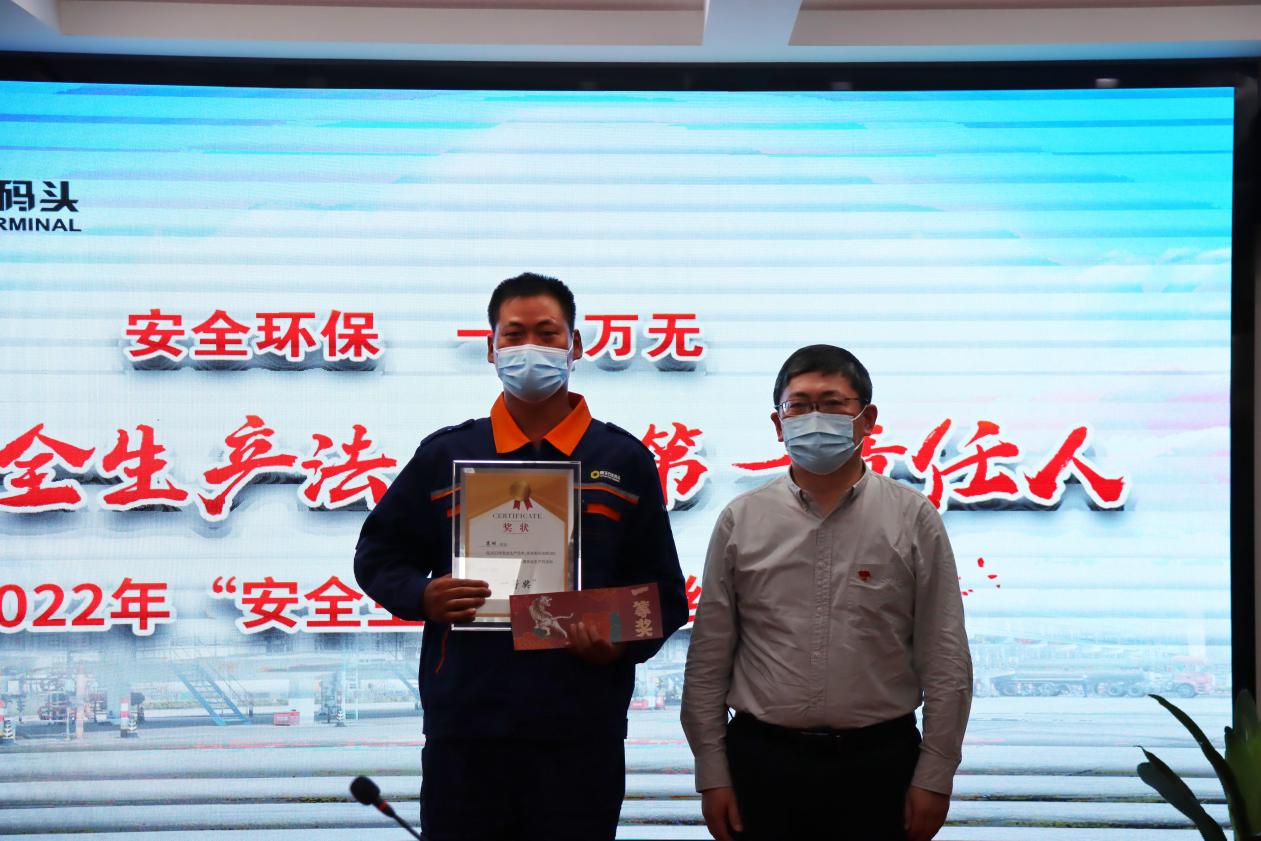 海企集团党委委员、纪委书记邢骏对公司安全生产工作表示了充分的肯定,同时围绕“防风险、保安全、迎二十大”的工作主线,要求丽天码头坚决树立安全生产意识,层层压紧压实安全生产责任,将安全月期间的好做法继续深化,并提出以下工作建议: