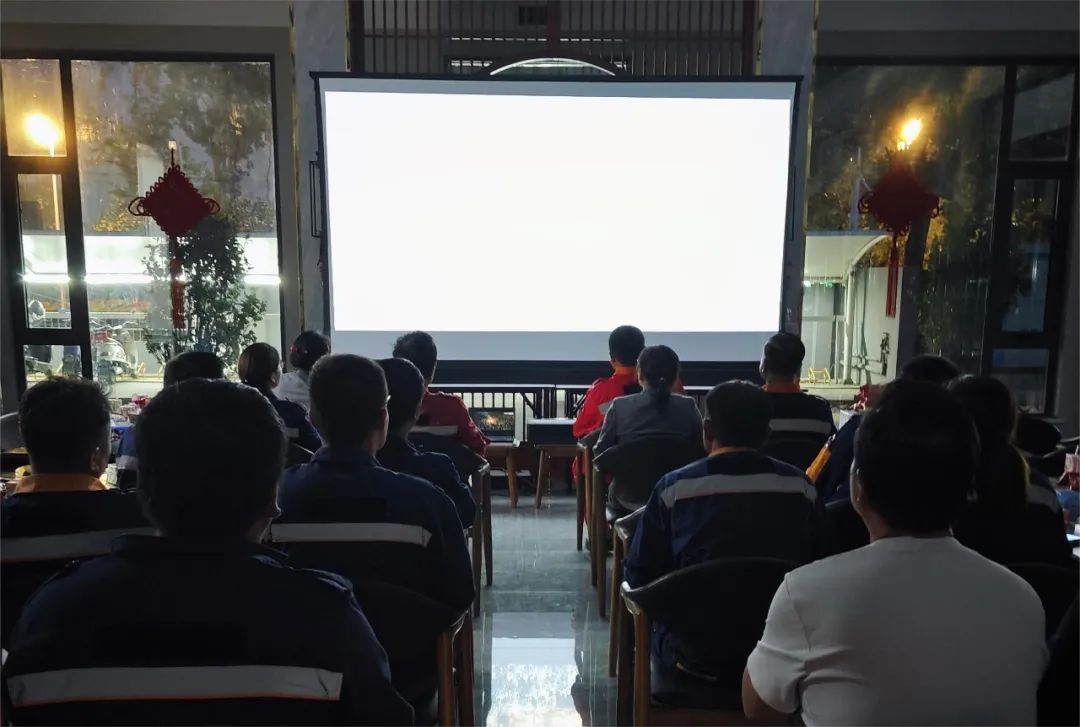 为推进学习贯彻习近平新时代中国特色社会主义思想主题教育走深走实,增强员工奋斗热情和扎实有为的工作动力,5月25日晚,丽天码头党支部组织召开“红色夜校”第16课(总第114课),观看红色电影《金刚川》。党员干部、积极分子和群众代表等40人参加活动。