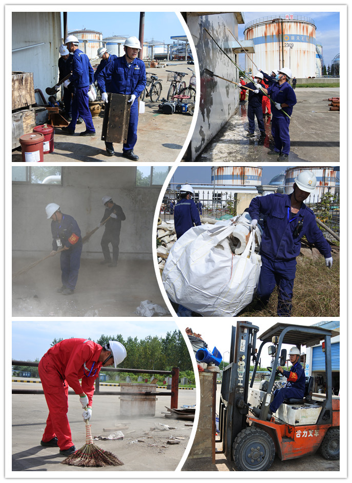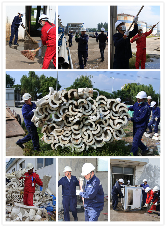 活动分为4个小组,分别是铲墙组、打扫组、叉车搬运组、人工搬运组。铲墙组负责铲除冷水机房外墙的起皮油漆;打扫组负责打扫冷水机房内部的卫生,清除地上青苔;叉车搬运组负责驾驶叉车装运物资及安全指挥工作;人工搬运组负责搬运清理冷水机房外部的小件工程物资及废旧泡沫。大家分工明确,各司其职,精诚合作,主动放弃中午休息时间,仅用了4天就大大改善了冷水机房环境,圆满完成了本次任务。