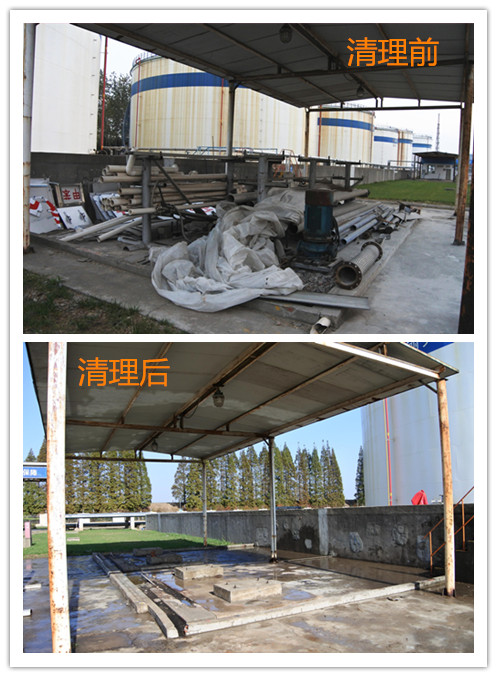 公司的五区老泵棚建于2010年,是五区最早的发货泵棚,后期因库区改扩建,新泵棚南移,该泵棚就成了各种物资的临时堆放地,严重影响库区环境。该泵棚物资品类复杂,有工程余料:PVC管、不锈钢管、涂塑钢管、桥架盖板、不锈钢铁皮;有防汛物资:排涝泵、排涝软管;有废旧物资:塑料纸、饮料瓶、旧字板、木棍、锈铁网等等。秉着“垃圾是放错了位置的资源”的原则,党员骨干们充分发挥特长,对这些临时堆放的工程余料、防汛物资、废旧物资进行仔细归类安置。能用的工程余料按类别放置于机修间工程物资摆放处;防汛物资统一放置于防汛物资库;没用的金属废件归置于待处理废料处。