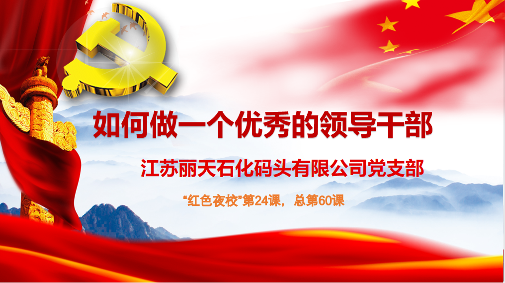 8月24日,丽天码头召开“红色夜校”第24课(总第60课),海企集团党委委员、副总裁史先召同志给我司党员、干部上了一堂关于“如何做一个优秀的领导干部”为主题的党课。