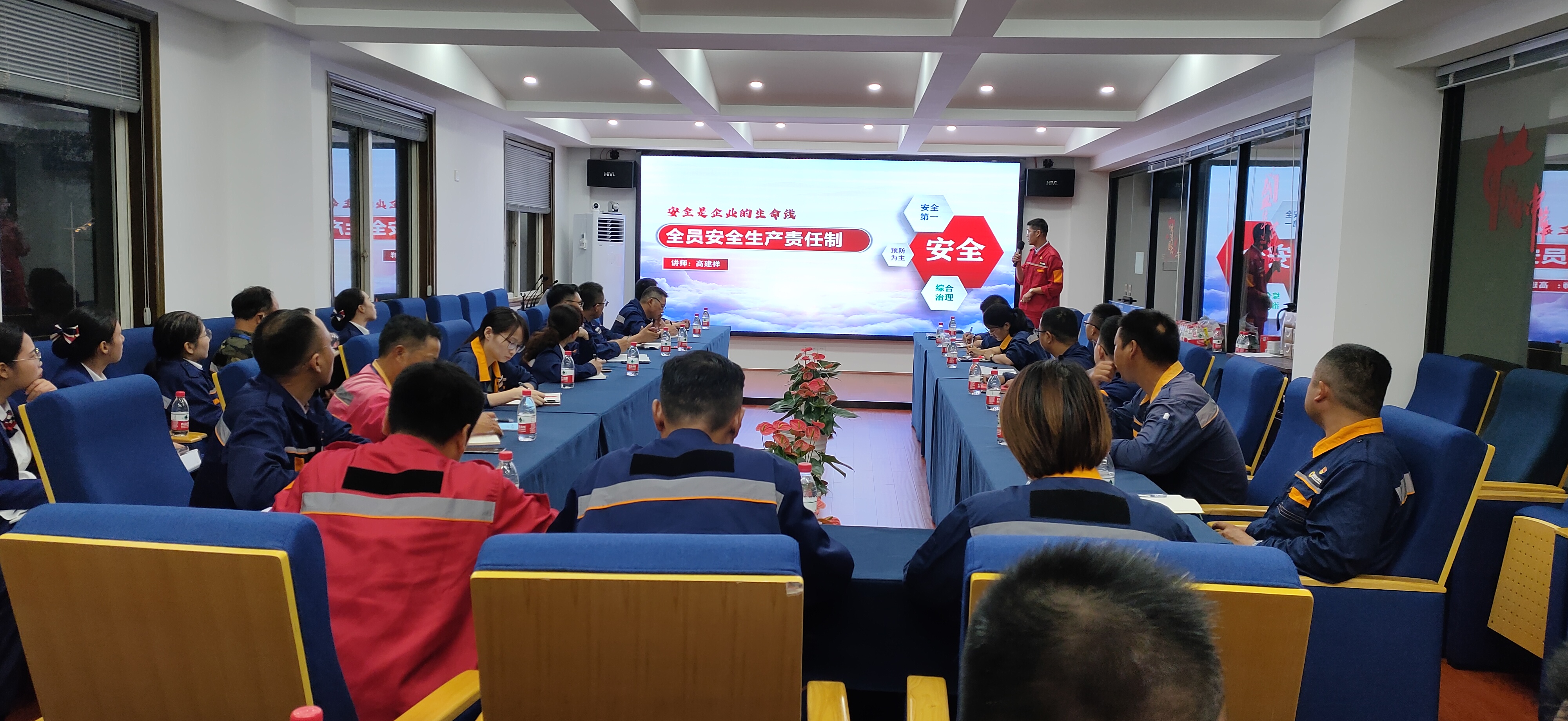 为进一步加深全员对新《安全生产法》的理解,强化全员安全生产意识,营造更加浓厚的安全生产氛围。10月14日,公司召开红色夜校第27课,开展第二期全员安全生产责任制培训,组织员工进行持续深入学习。本次培训由常务副总、安全总监黄德华主持,安环部安环副经理高建祥讲解,班组长及以上员工共33人参加。