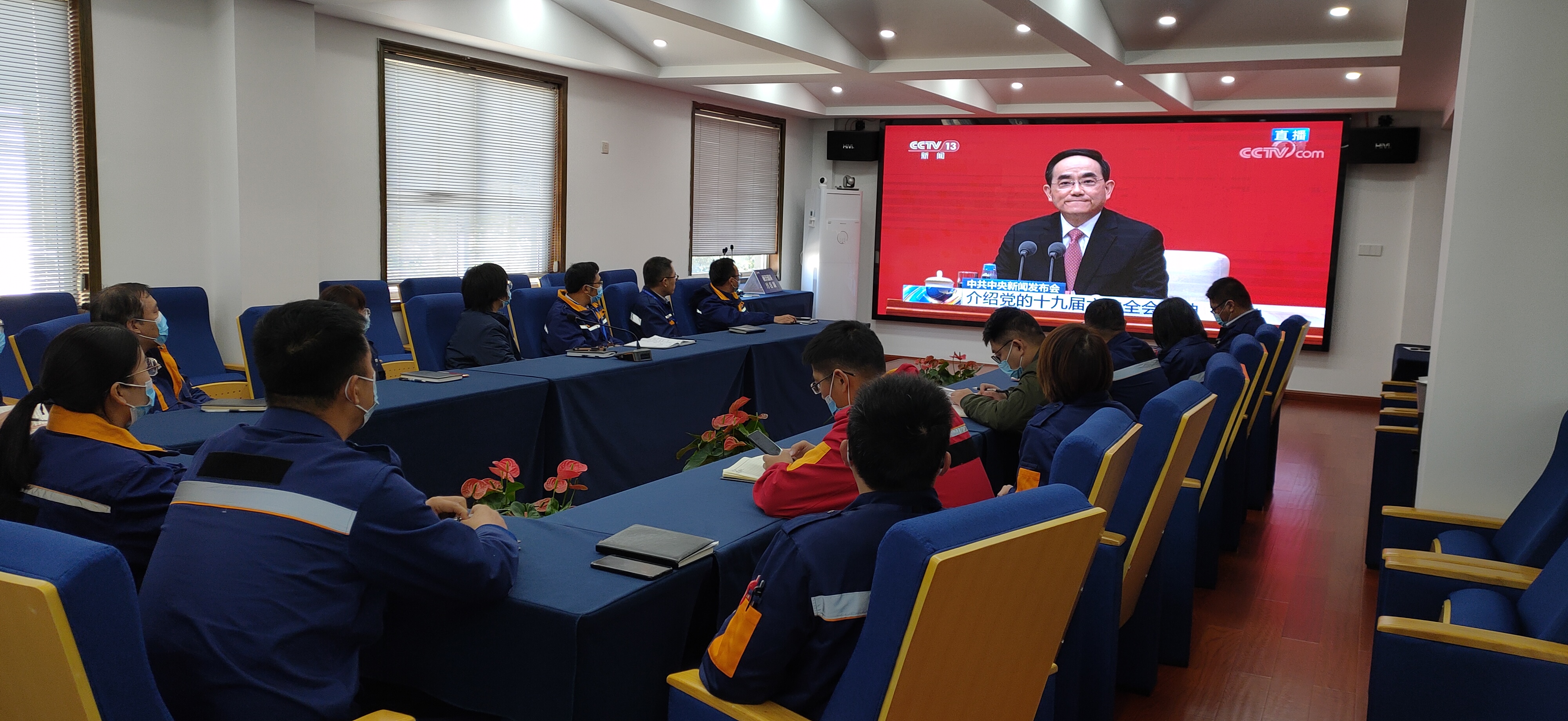 丽天码头第一时间组织全体党员、入党积极分子观看新闻发布会直播,认真聆听全会精神介绍和详细解读,全面掀起学习贯彻全会精神的浓厚氛围。
